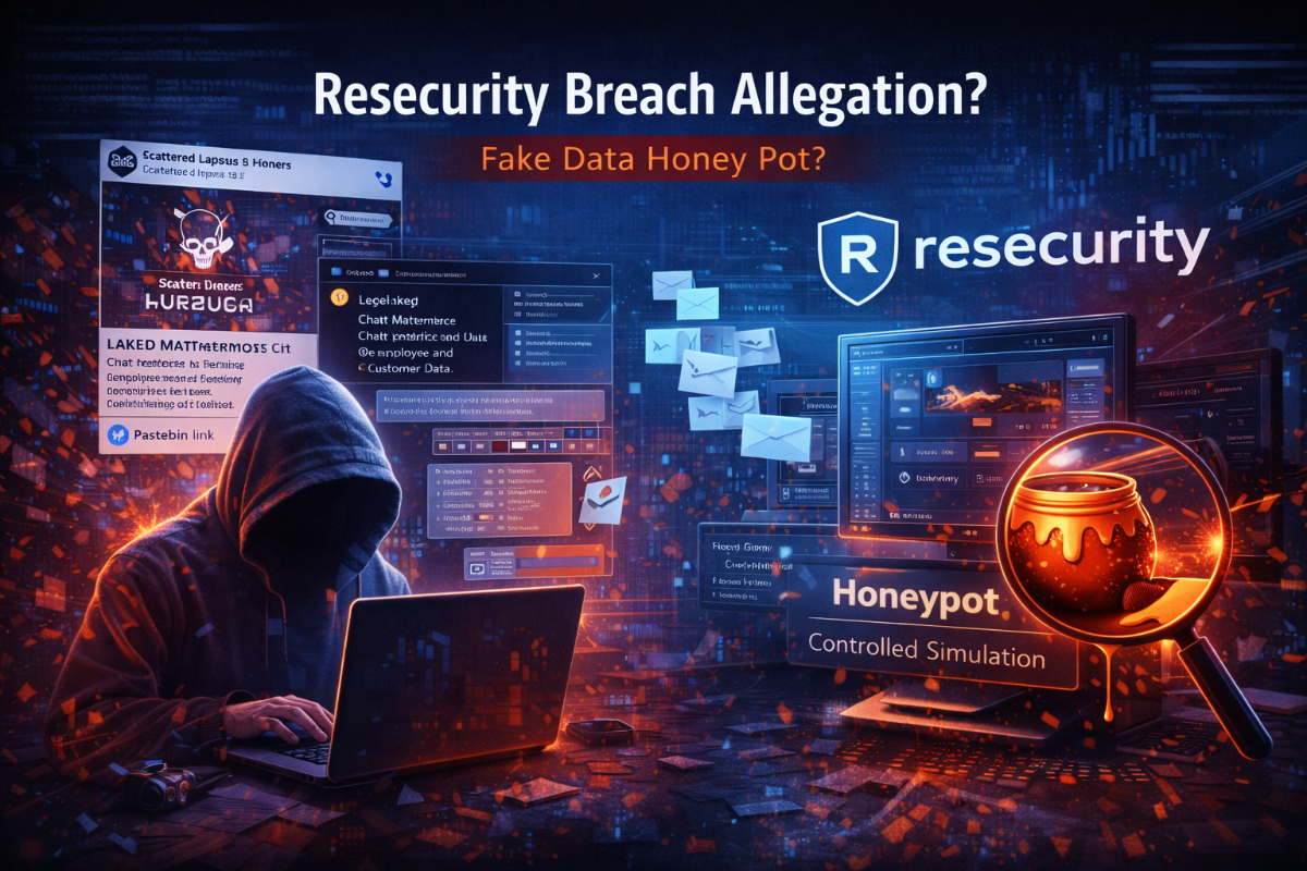 به گزارش کمیته رکن چهارم، گروهی با نام Scattered Lapsus$ Hunters با انتشار تصاویری در تلگرام، مدعی شدهاند که به سامانههای داخلی شرکت امنیت سایبری Resecurity نفوذ کرده و دادههایی از جمله اطلاعات کارکنان، مشتریان و مکاتبات داخلی را سرقت کردهاند. اما Resecurity این ادعا را تکذیب کرده و گفته این تصاویر مربوط به یک هانیپات هدفمند است که برای پایش فعالیت مهاجمان طراحی شده بود.
