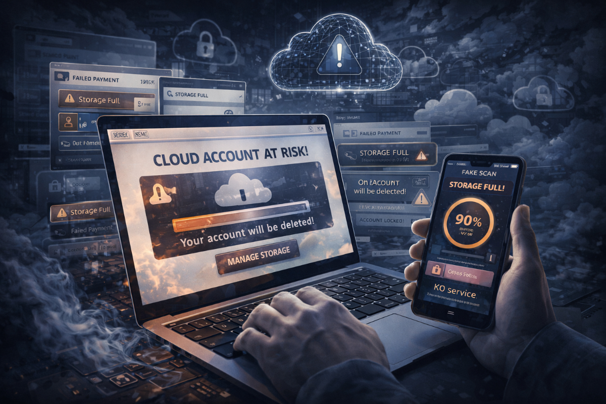 به گزارش کمیته رکن چهارم- در این حملات، ایمیلهایی با عناوین هشداردهنده مانند «پرداخت ناموفق»، «فضای ذخیرهسازی پر شده» یا «حساب شما مسدود میشود» برای کاربران ارسال میشود و ادعا میکند در صورت اقدام نکردن فوری، فایلها و حساب ابری آنها حذف خواهد شد. بررسیهای BleepingComputer نشان میدهد برخی قربانیان روزانه چندین ایمیل مشابه از فرستندههای مختلف دریافت میکنند.